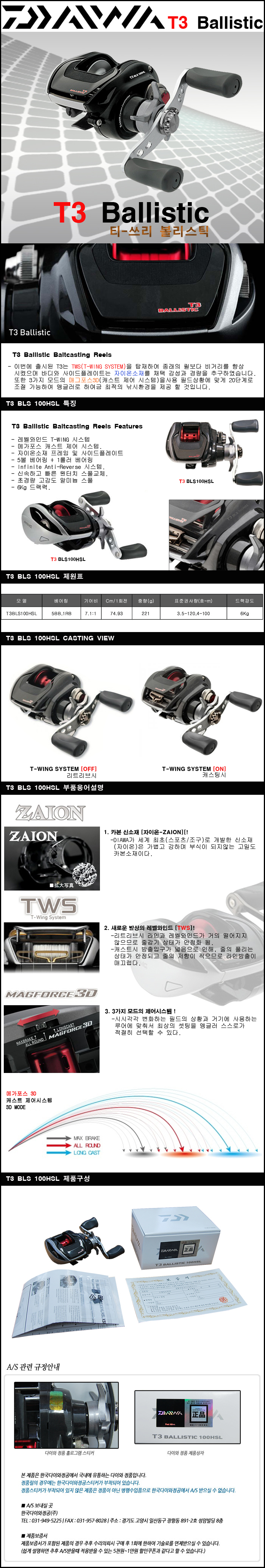 상품명 : [다이와] T3 볼리스틱(민물용) 100HSL